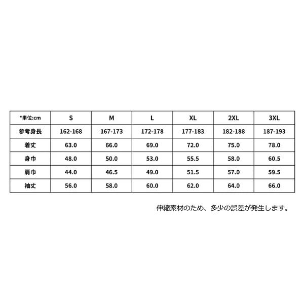 3XL 参考身長187-193 着丈78 身幅60.5 肩幅59.5 袖丈66