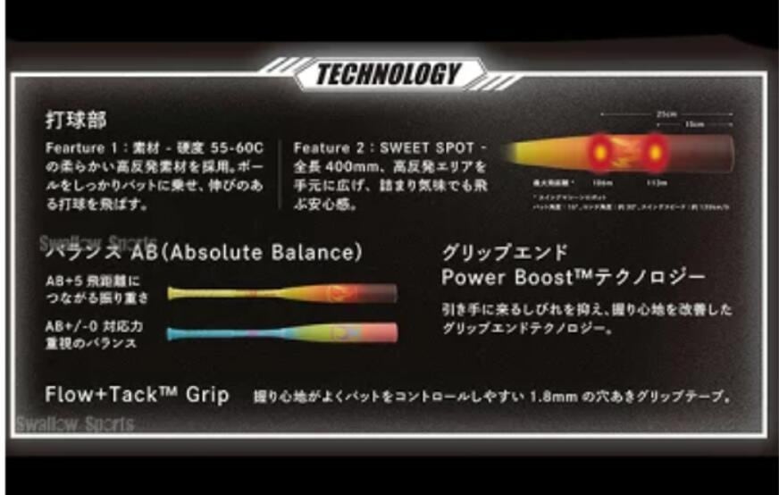 EASTON独自開発の柔らかい高反発素材を採用。ボールをしっかりバットに乗せ、伸びのある打球を飛ばす。