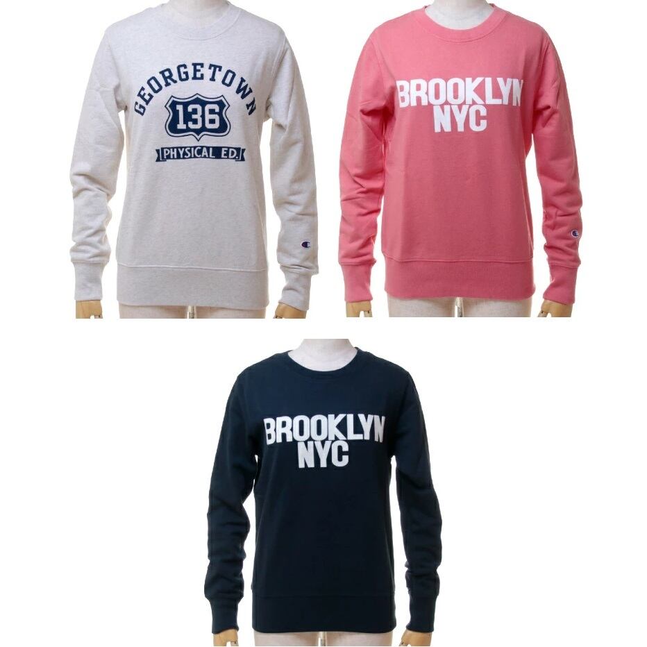 champion レディース スウェットトレーナー ガーメントウオッシュ加工 アメリカンカレッジデザイン CW-N001