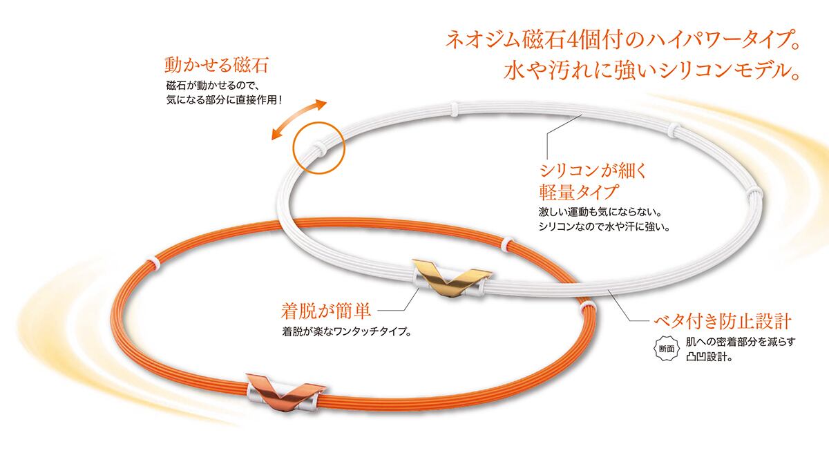 最大の特徴は、外部からの刺激や圧力等に拮抗するかたちで同等の強さのエネルギーを発生させる力を持っていることです。これを誘導吸収と誘導放出と言います。ここで発生したエネルギーは、身体の様々な機能を活発化させ、さらに磁気効力が加わることで健康面や運動面に大きな影響を与えます。