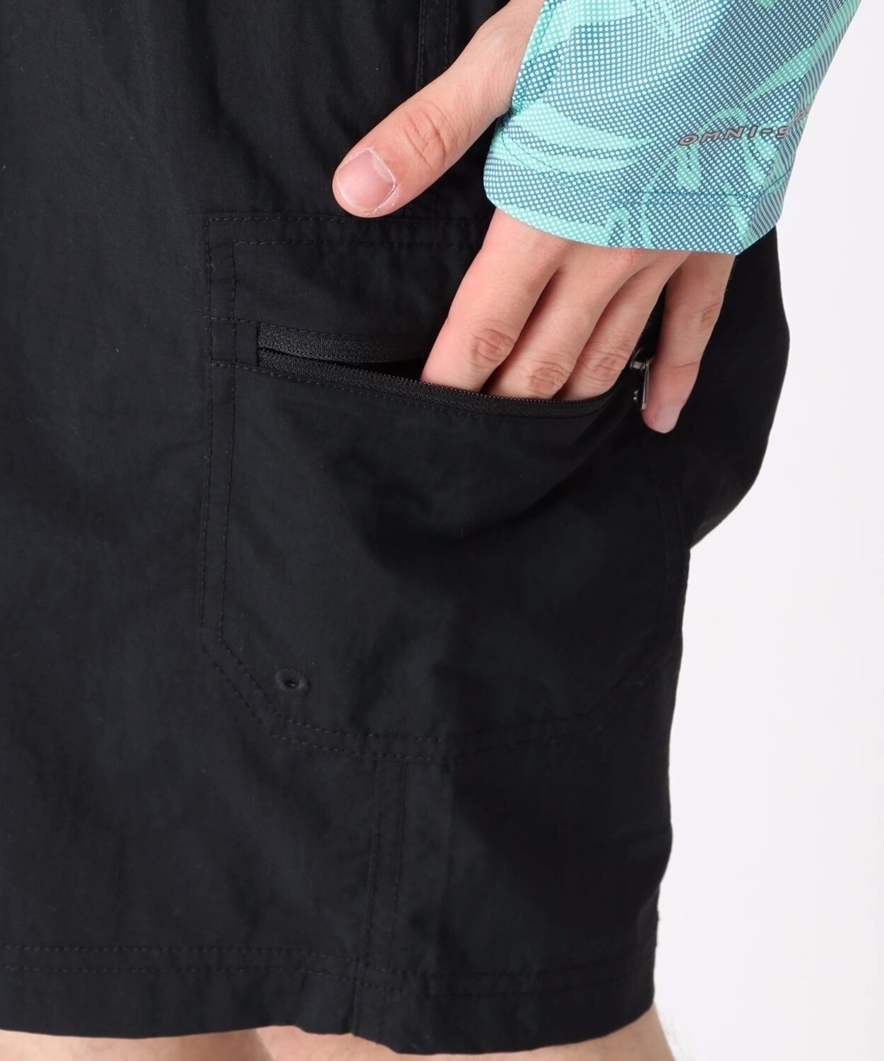 ●メッシュインナー付きの水陸どちらでも使えるアウトドアショーツです。紫外線をブロックして肌を日差しから守るUVカット機能を搭載し、水辺でのアクティビティのみならずフェスやキャンプなどの様々なサマーアクティビティで活躍します。