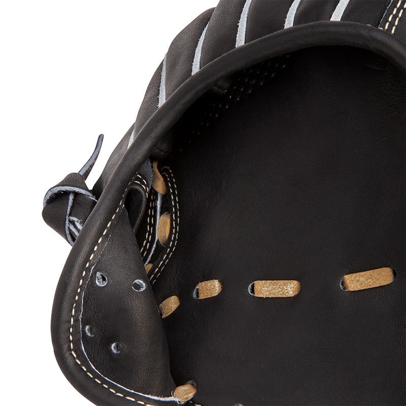 ■平裏指先型押し加工:型押し加工することで指先の食いつきが向上。中指・薬指部に配置。