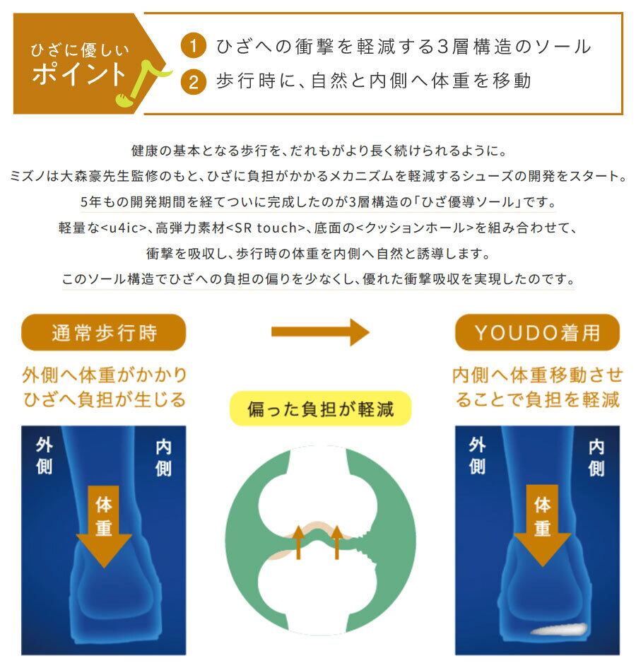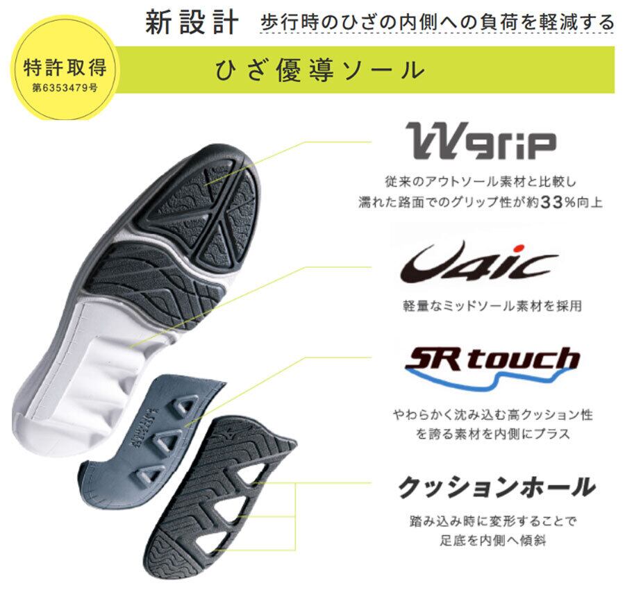 ひざに優しく、あなたの歩行を優しく優導。濡れた路面も滑りにくい。