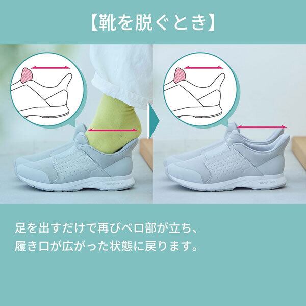 アッパーに着脱容易なミズノ独自構造を採用しつつ、歩きやすさにもこだわった新感覚ウォーキングシューズ
