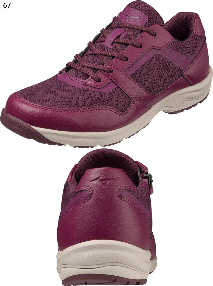【送料無料】4E幅 幅広 ワイド ミズノ レディース LD アラウンド 3 SW ウォーキングシューズ ローカット 紐靴 ファスナー付き パープル 紫 送料無料 Mizuno B1GD2215